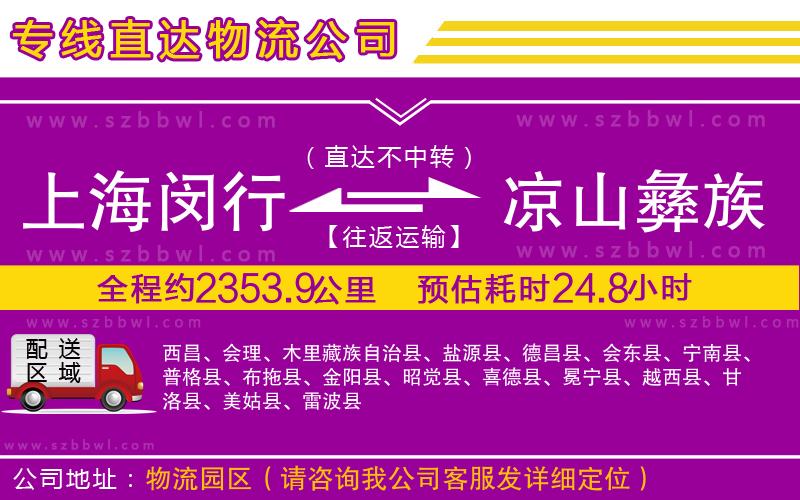 上海閔行區(qū)至涼山彝族自治州貨運公司全程約2353.9公里,專線運輸用時大約24.8小時,可運輸直達西昌、會理、木里藏族自治縣、鹽源縣、德昌縣、會東縣、寧南縣、普格縣、布拖縣、金陽縣、昭覺縣、喜德縣、冕寧縣、越西縣、甘洛縣、美姑縣、雷波縣;遵利物流可承接:整車運輸、零擔運輸、大件運輸、轎車托運、危險品 136-7195-8853 點擊撥打電話